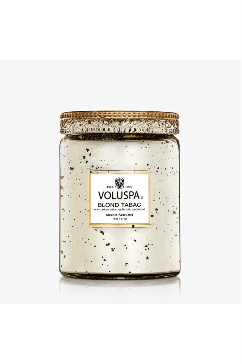 Voluspa's unique coconut wax blend is housed in a 18 oz. glass with linings of mirrored gold glass, metallic accented exterior, and topped with an glass art deco star embossed lid. The single wick allows you to enjoy fragrance throw for 100 hours. Our candles are handcrafted in the United States and feature our proprietary, clean-burning coconut wax blend and natural wicks. Our products are free of phthalates, parabens and sulfates and are never tested on animals. Up-cycle this best seller into a keepsake after the last burn.