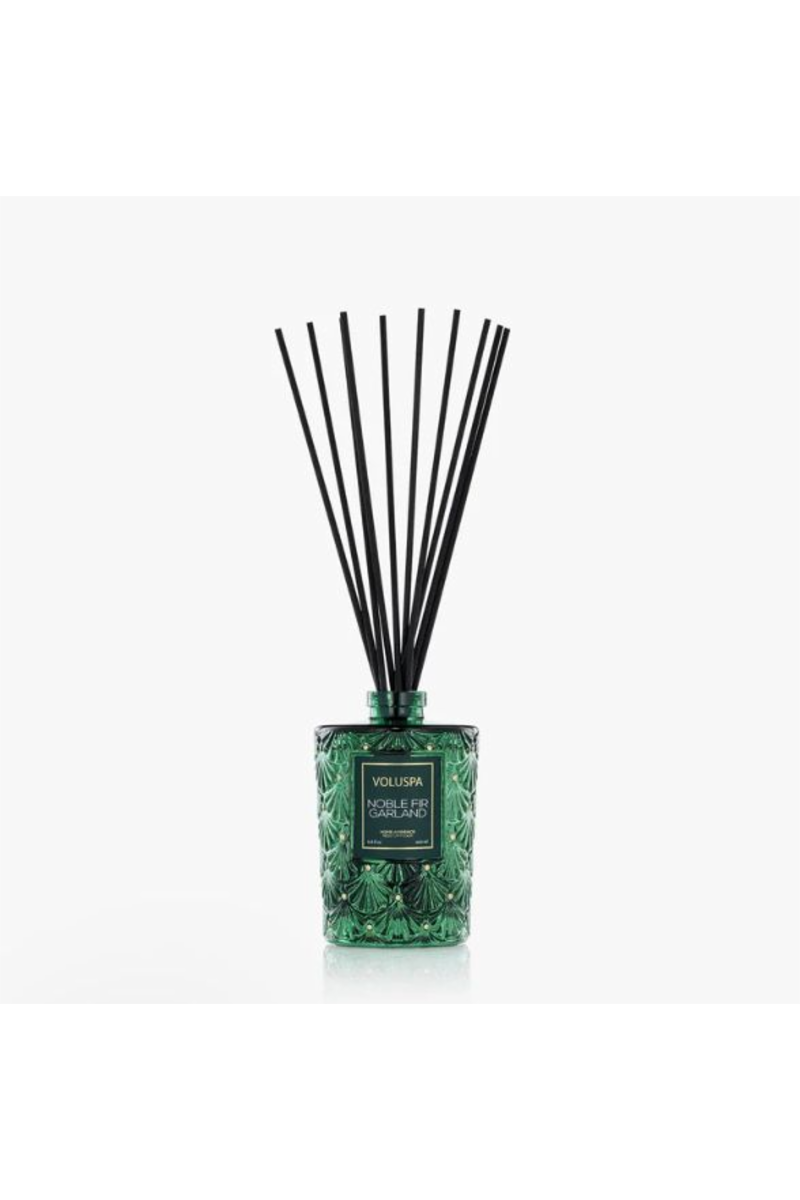 Voluspa’s fragrant diffuser oil is housed in an art deco embossed green glass vessel for a subtle pop of elegant décor. Create your home's signature, always-on fragrance in spaces requiring minimal effort, and enjoy for 4-6 months. Includes 10 black high absorbency reed sticks for powerful fragrance without overwhelming. Our products are free of phthalates, parabens and sulfates and are never tested on animals.