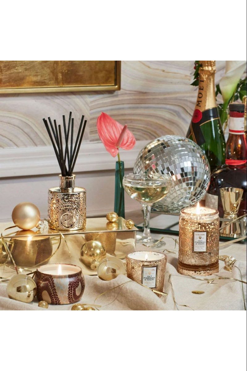 Notes of Golden Spiced Pomander, Holly Berries, Cardamom & Japanese Hinoki Bark.