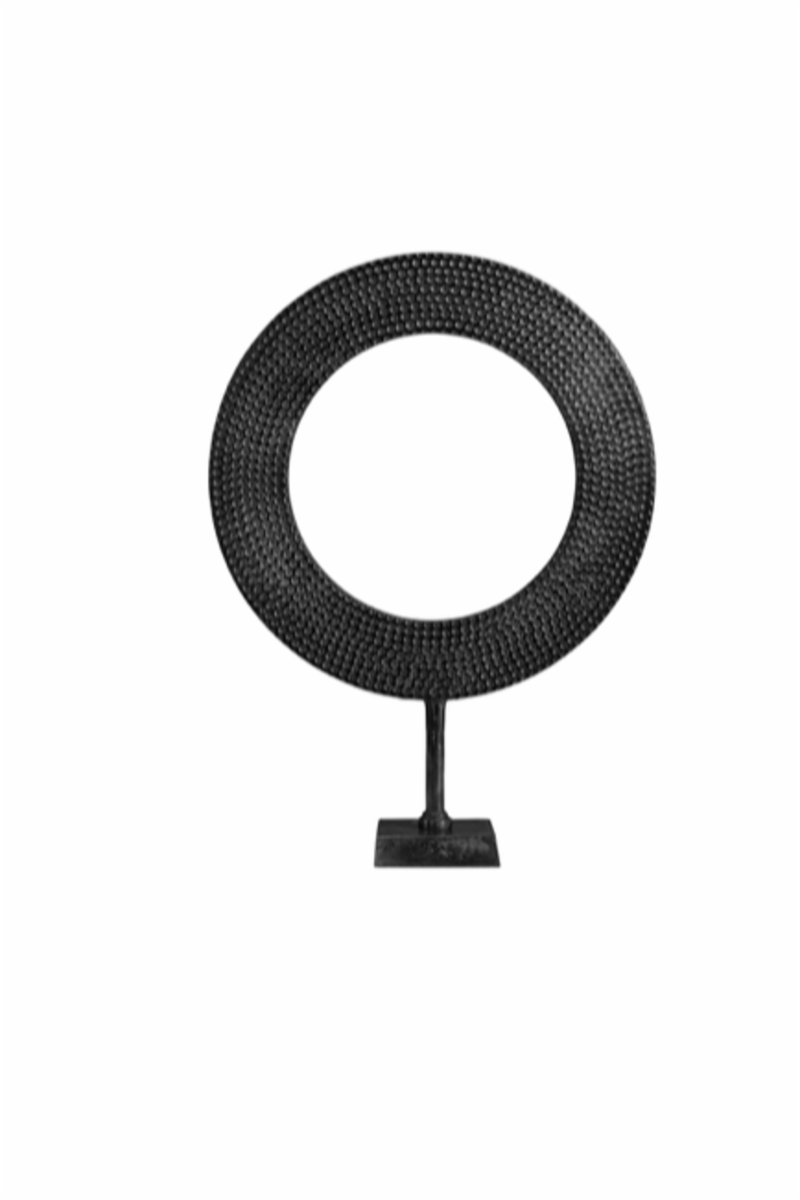 Anello er en stilfull innredningsdetalj fra Artwood i svart med dekorativt sirkelmønster. Skulpturen står på en fot som gjør den stabil. Plasser gjerne Anello alene eller bak mindre dekorasjoner.