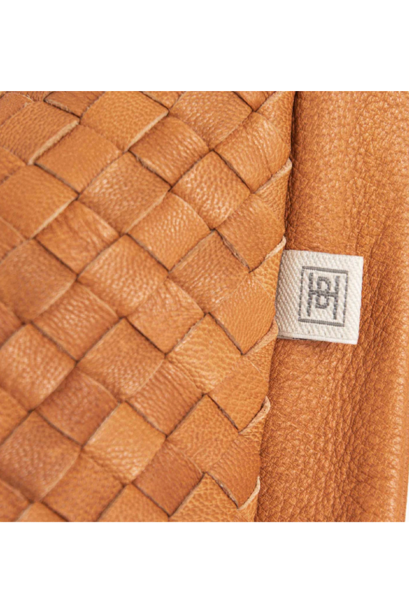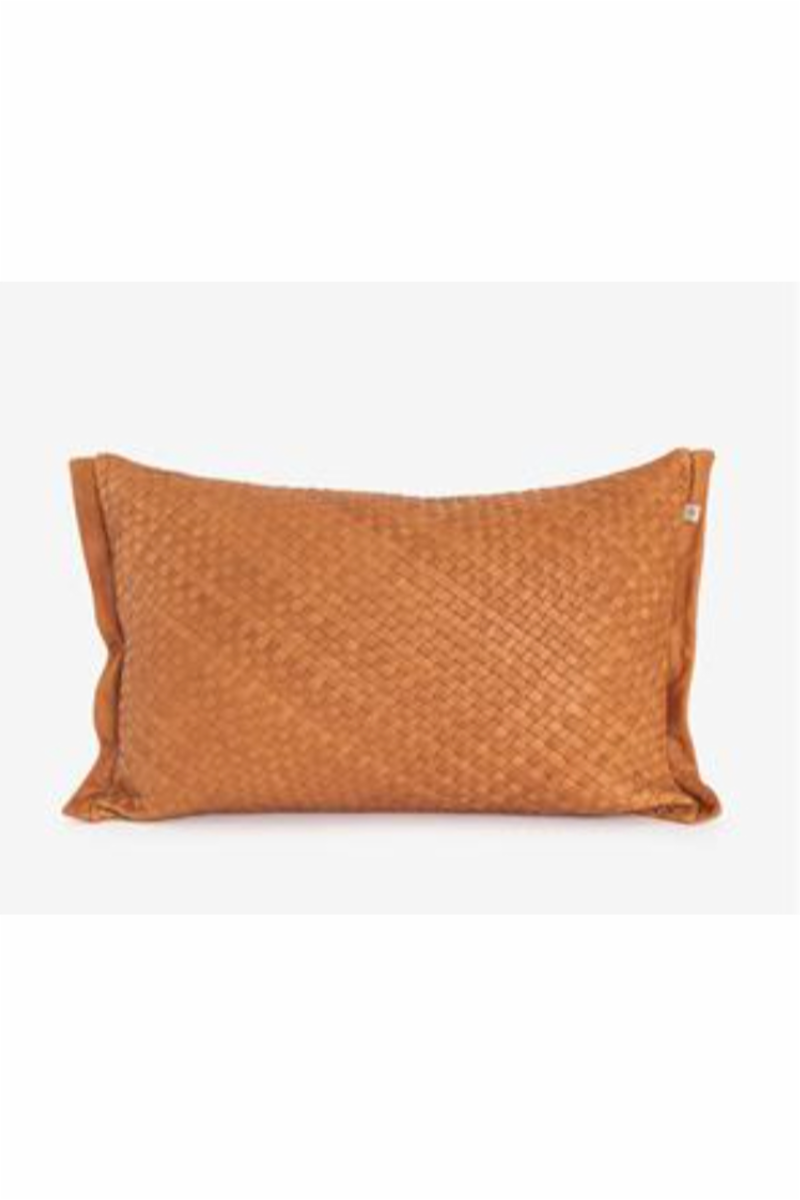 Putetrekk i flettet skinn med bakside i fløyel. Tidløs skinnpute med flettestruktur i fargen Oak.