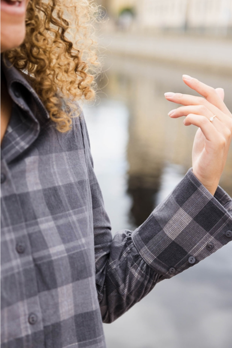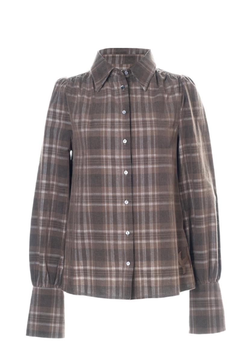 Unik skjorte med trendy puffermer og rynker på skuldrene, bred mansjettstil og laget av 100% bomull i yarndyed corduroy. Fullført med en markant H-logo nederst til venstre for en stilfull touch.
