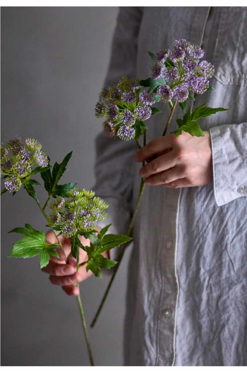 Throatwort er en kunstig lilla blomst med grønne blader og finurlige lilla blomster som er ideel til å blande med andre blomster og grønne planter.