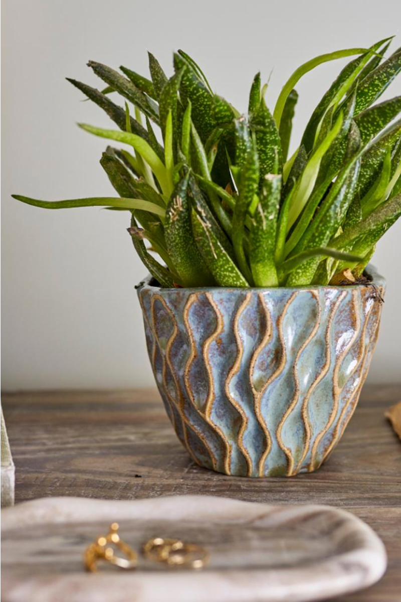 Snakk om blomsterpotten sin. Denne nydelige kreasjonen fra Creative Collection har en fantastisk overflate som er inspirert av naturen og kommer i en herlig blå farge. Nydelig å plassere en grønn plante i.