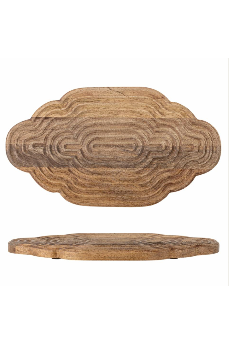 Nydelig serverings brett laget av mango tre i et fasinerende håndskjært mønster