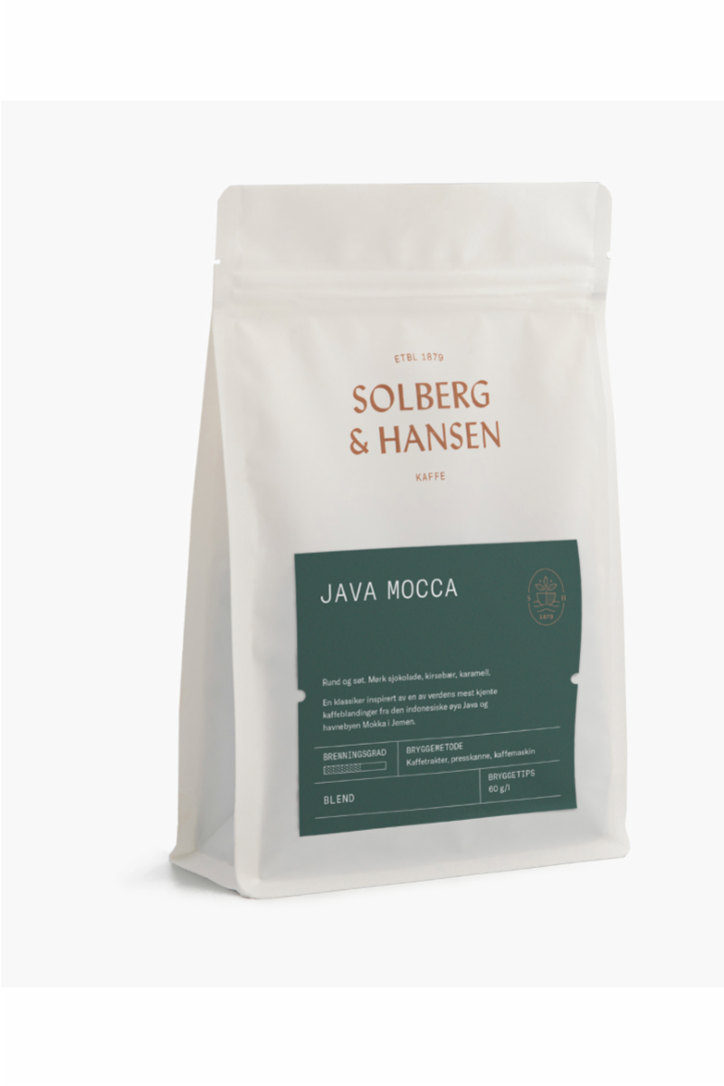 Tradisjonelt sett er dette en blanding av kaffe fra Jemen og Indonesia. Navnet er hentet fra den indonesiske øya Java, og havnebyen El Mocha i Jemen. Vår Java Mocca er komplettert med bønner fra andre kafferegioner. En stor del av kaffebønnene i denne blandingen er bærtørket, som vil si at de er tørket med fruktkjøttet på bønnen intakt. I koppen gir dette seg utslag i kraftige, søte og fruktige smaker.