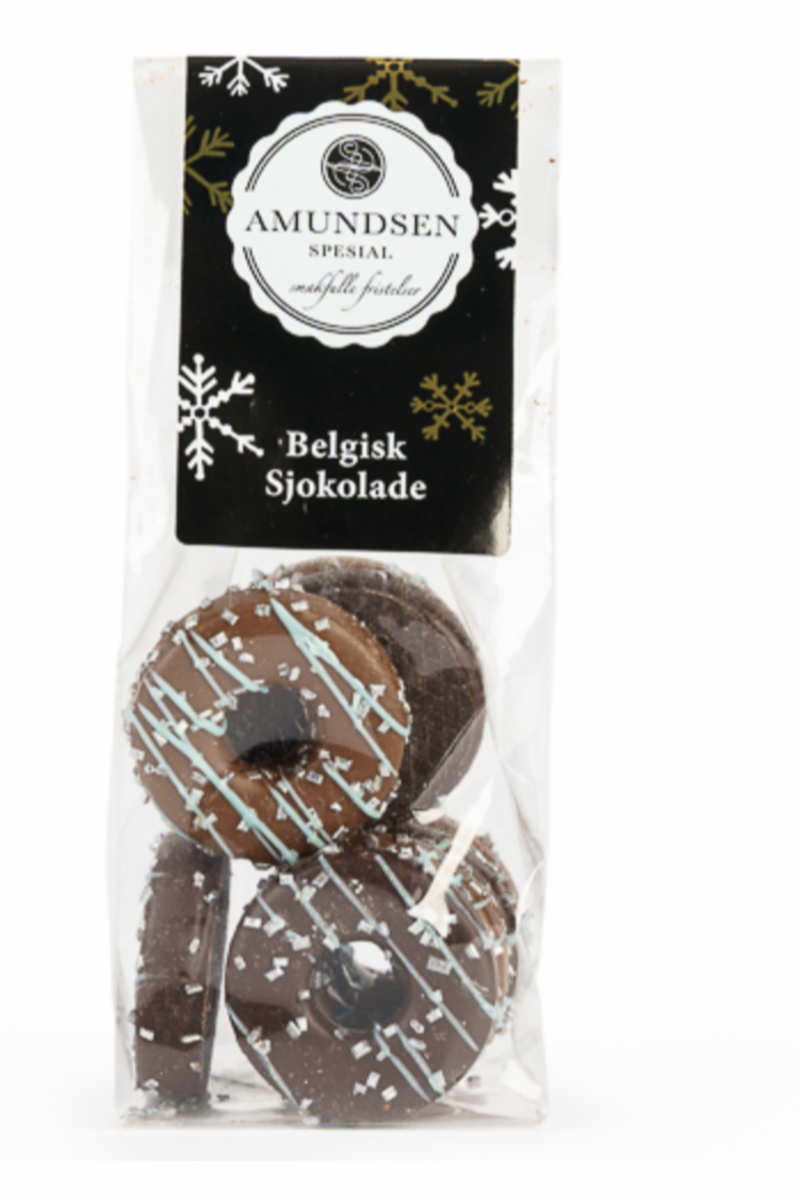 Ingredienser: melkesjokolade(sukker kakaosmør, kakaomasse, helMELKpulver, skummetMELKpulver,LAKTOSE, naturlig vaniljesmak, emulgator (SOYAlecithin), mørk sjokolade(kakaomasse, sukker, kakaosmør, MELKefett, emulgator (SOYAlecithin)) glukosesirup, invertsukker sirup, helMELK, vann, sukker smør(MELK), sukret kondensert MELK, hvit sjokolade(sukker, kakaosmør, naturlig vaniljesmak, stabilisatorer(E422, E339), naturlig smakstilsetning, salt. fargestoffer(sirulina, elpe), gelatin, farge (E173). Kan inneholde spor av: EGG, GLUTEN, NØTTER