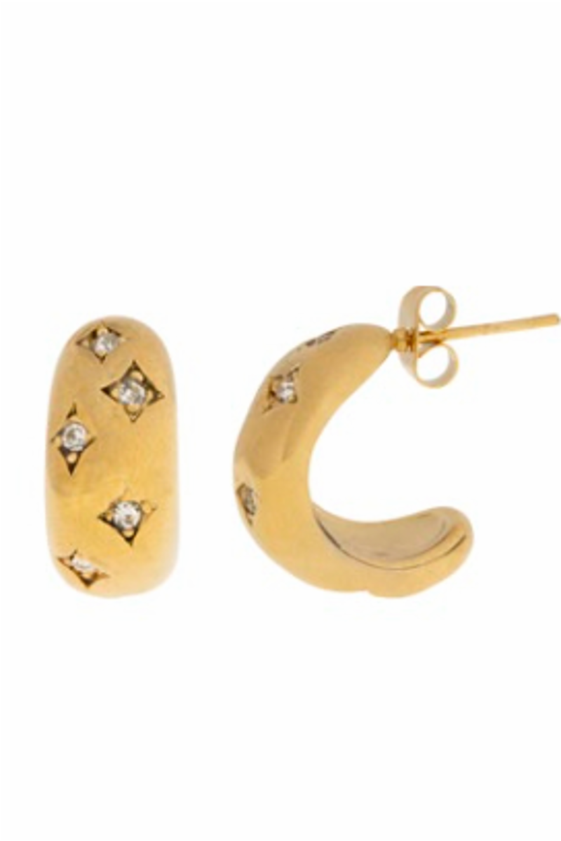 Badass rålekre hoop øredobber med krystaller i rustfritt stål