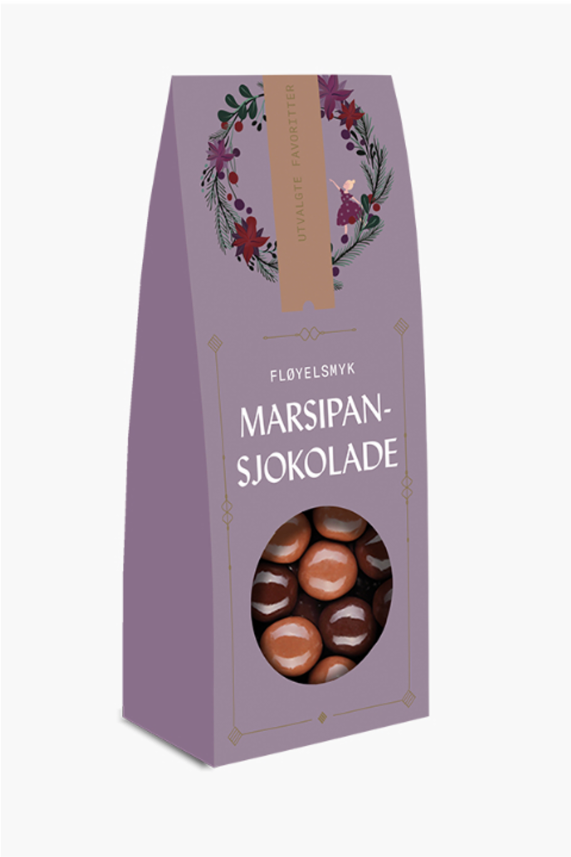 Fløyelsmyk marsipan trukket med et delikat lag av melkesjokolade og mørk sjokolade. En populær klassiker som smaker godt til en kopp kaffe eller te.