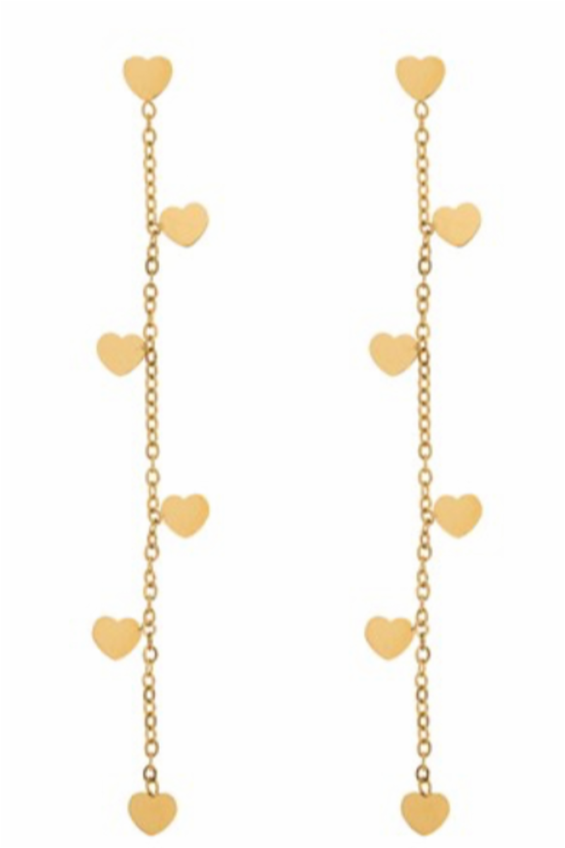 Nydelige øredobber med små hjerter som henger på et lite kjede.
