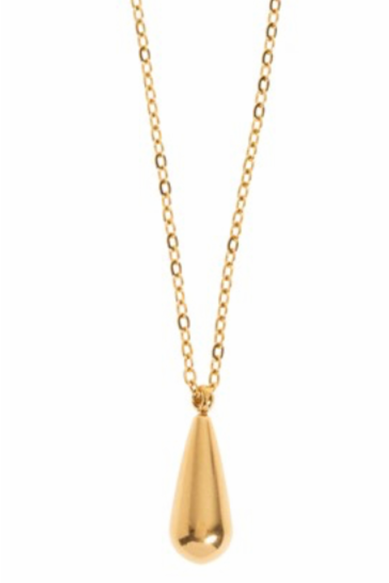 Et trendy dråpekjede i gull, en elsket klassiker, har nå blitt oppdatert med en elegant kjede som holder den vakre dråpen. Det hengende halskjedet er laget av waterproof rustfritt stål med en skinnende 18k gullbelegg, noe som gjør den både elegant og slitesterk. Kombiner den med øredobber fra vår omfattende kolleksjon for en komplett look.