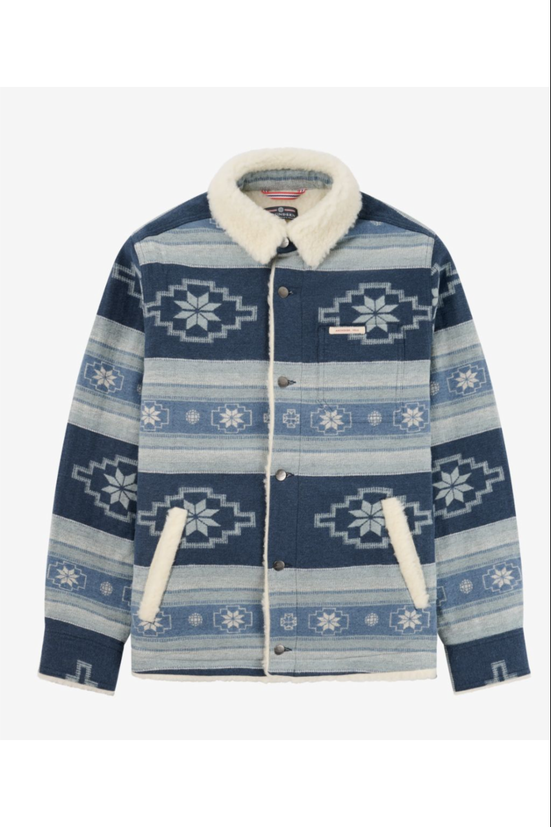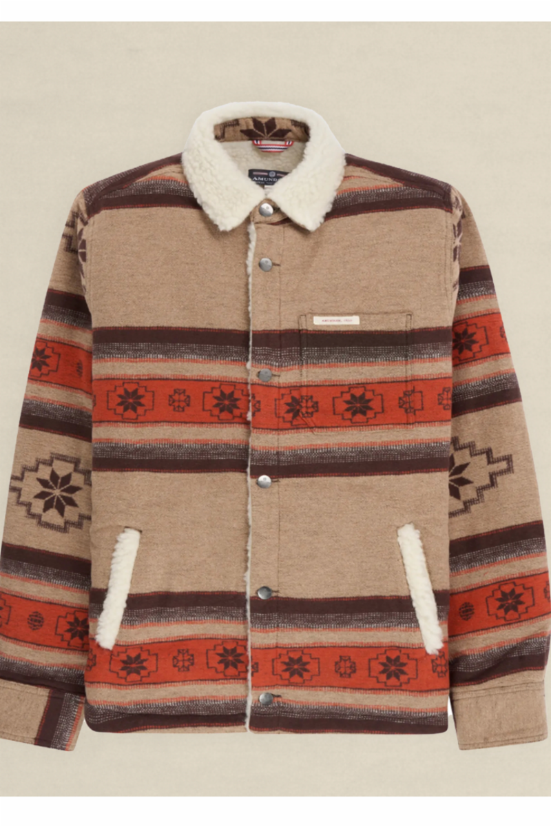 Denne skjorten har Amundsen tatt sin inspirasjon av det urnorske åkle som ble hengt rundtom på veggene. Deilig jakke og hive på seg på høsten som et mellomplagg eller på litt kaldere sommer måneder. Kommer med deilige lommer foran slik at man kan varme hendene, metall knapper foran.