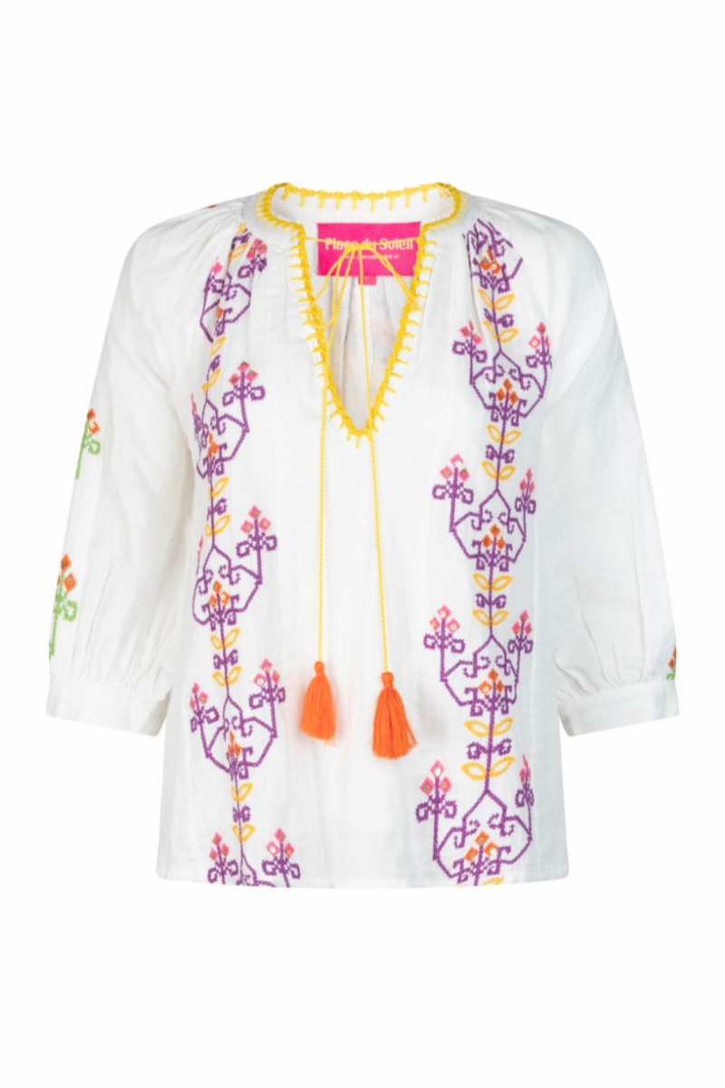 25320 Place du soleil white purple embroidery blouse