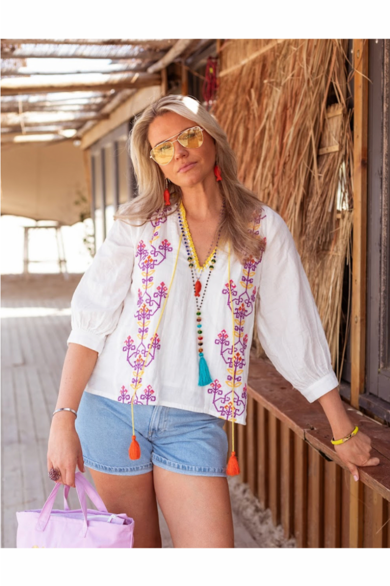 Nydelig bomullskjorte med lekre broderi detaljer og dusker. Perfekt til jeans eller shorts.