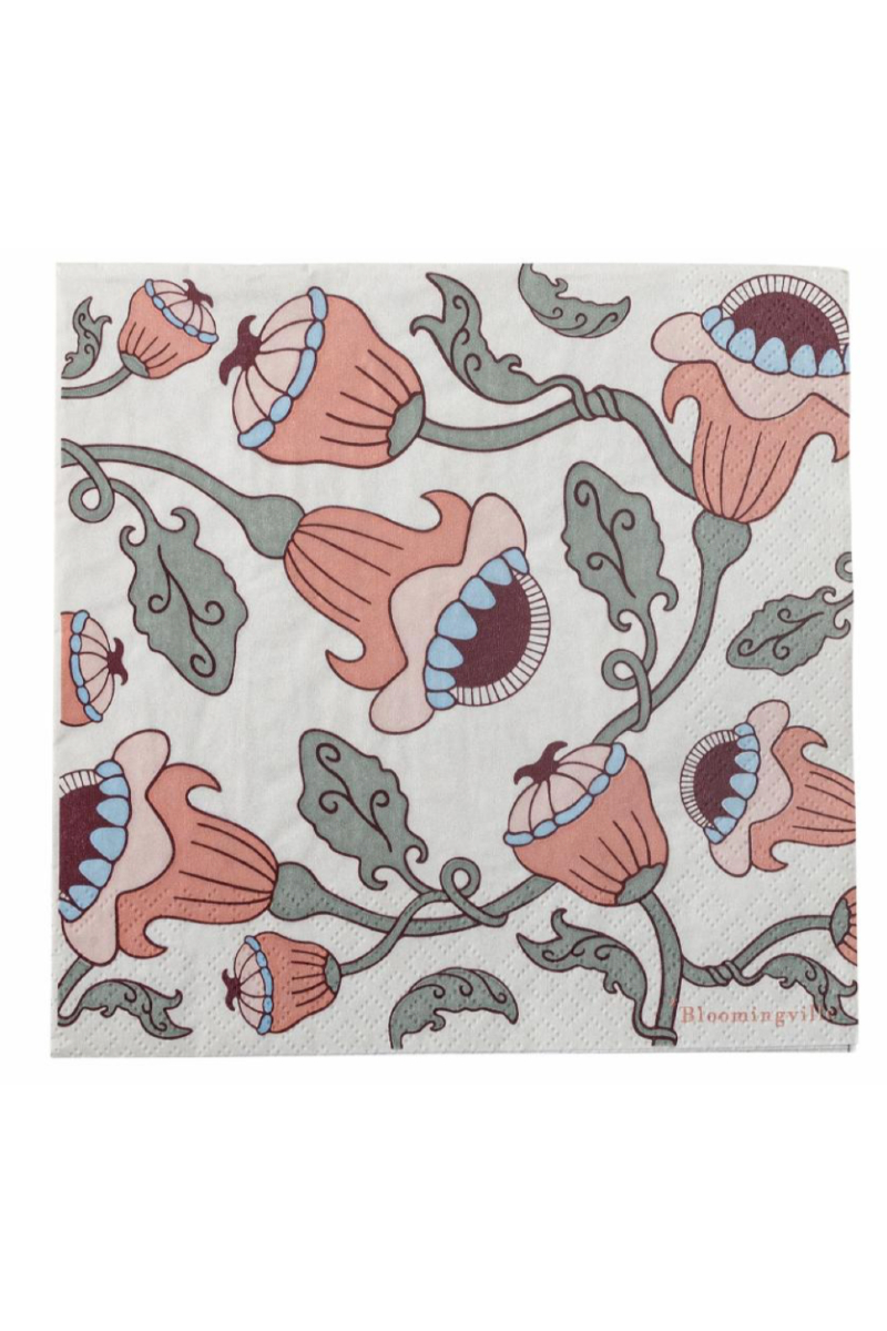 Papir serviett som kommer i en pakning på 20stk laget av FSC sertifisert papir. Serviettene har et mønster i rosa nyanser og grågrønne grener som gir fin farge til bordet l33 b33