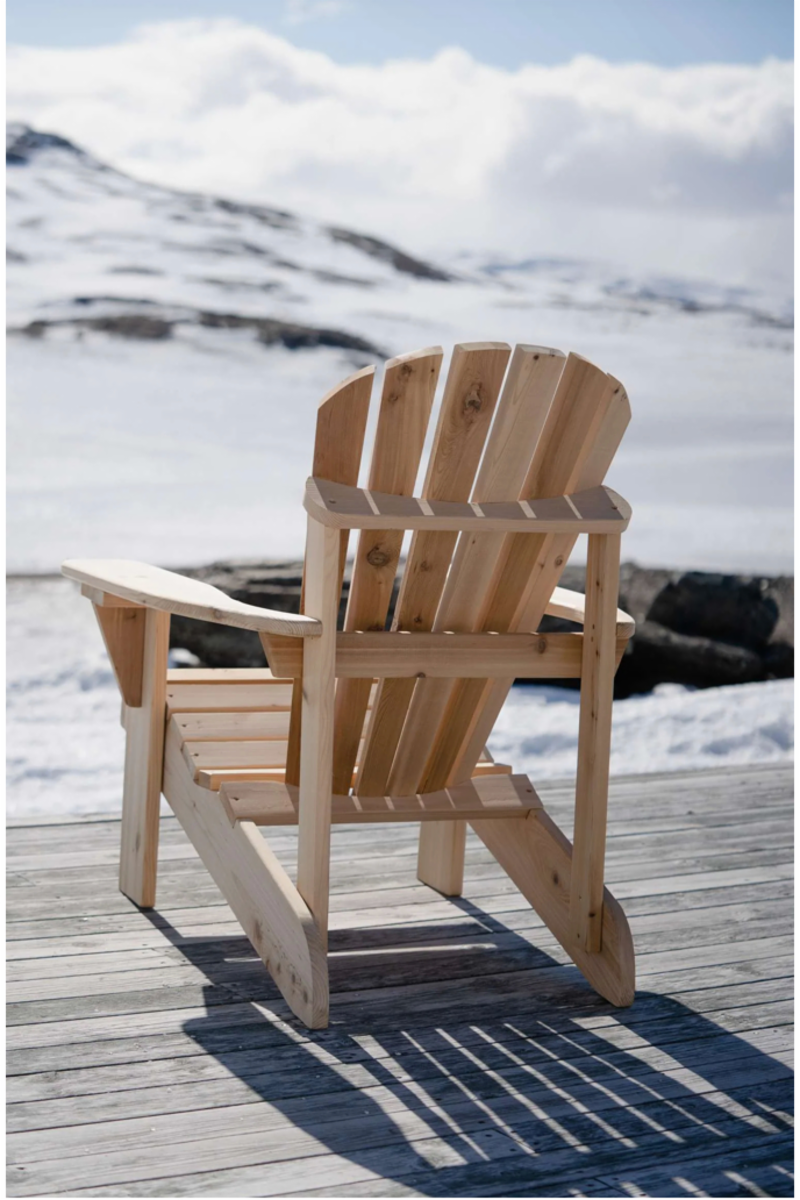 Stolen er laget i sedertre, og har den klassiske rake, skråstilte ryggen og de brede, generøse armlenene kjent fra Classic Adirondack-stolen. Setet er dypt og romslig, for en behagelig og avslappet sittestilling. Stolen leveres delvis montert.