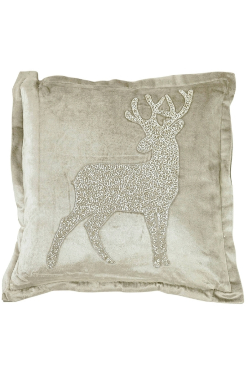 55605 Pute med håndsydd hjorte motiv 45 x 45cm