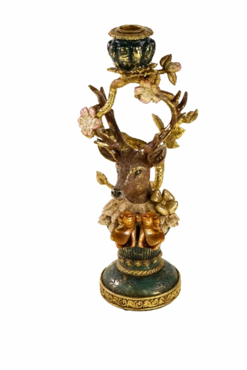 - Møt Erika, en fantastisk flott lysestake laget av polyresin som er en hjortefigur med grønne og gull detaljer. Hun trives aller best sammen med kompisen sin Alexander som du også finner her i nettbutikken vår.