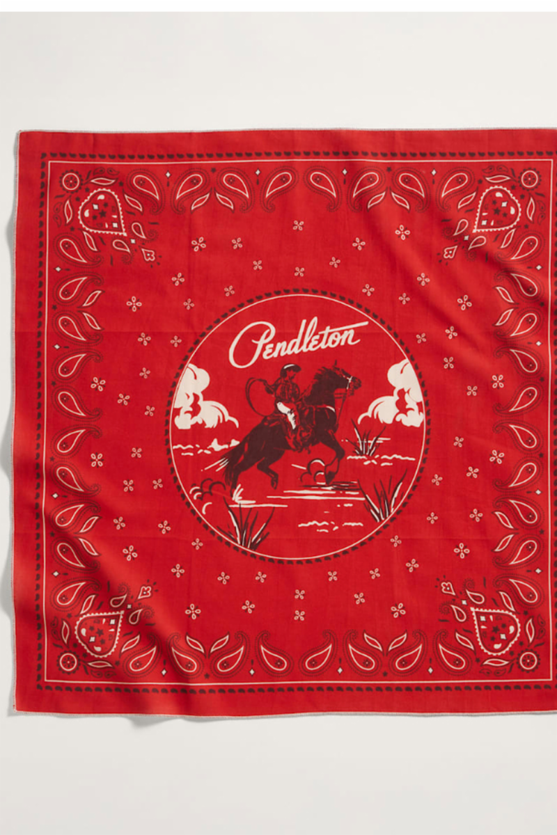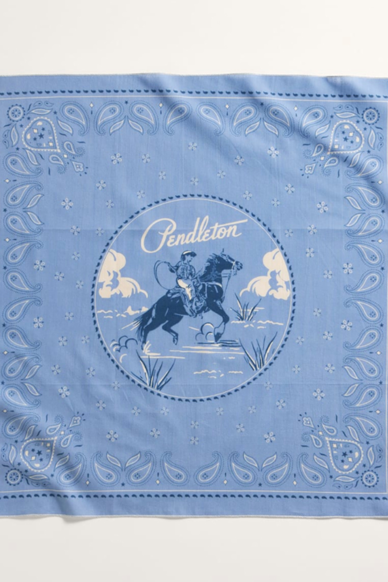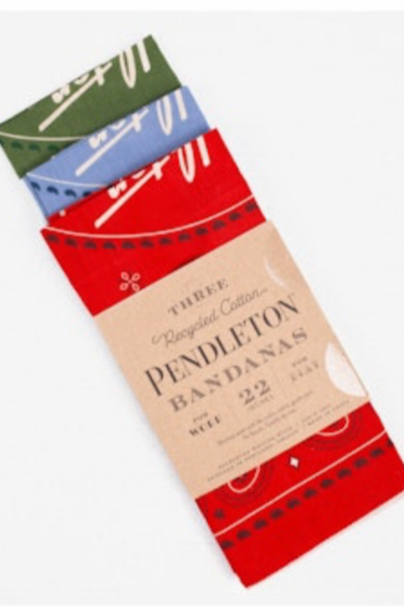 Made from 100% recycled cotton, these three bandanas feature a vintage-inspired rodeo scene and a classic Pendleton logo.