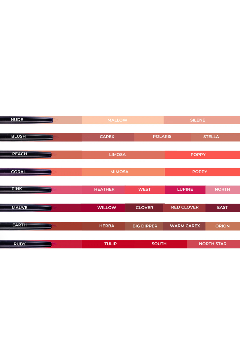Endelig er de her! Definer, form og forsterk leppe konturen din med våre Long Lasting Lipliners -med holdbarhet i opptil 12 timer. Det perfekte verktøy for å forhindre at leppefargen flyter ut og legger seg i fine linjer. Med sin kremete konsistens og presise tip bevares leppene perfekt definert hele dagen. Spissing av pennen er en saga blott, bare vri på beholderen for mer produkt. Finn din match blant åtte nyanser skapt for å komplementere Tind of Norway sin leppestift og lipgloss.