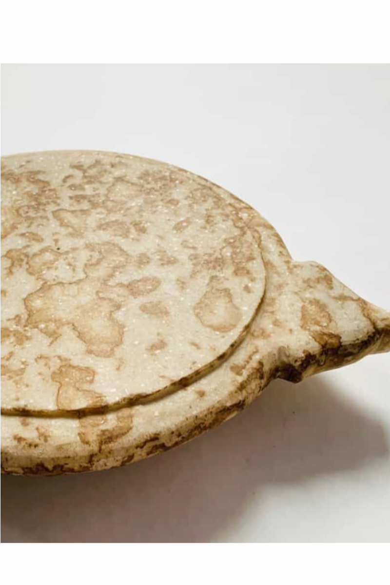 Nydelig marmor fat som du kan bruke som gryteunderlag eller lysfat med herlige beige sjatteringen.
