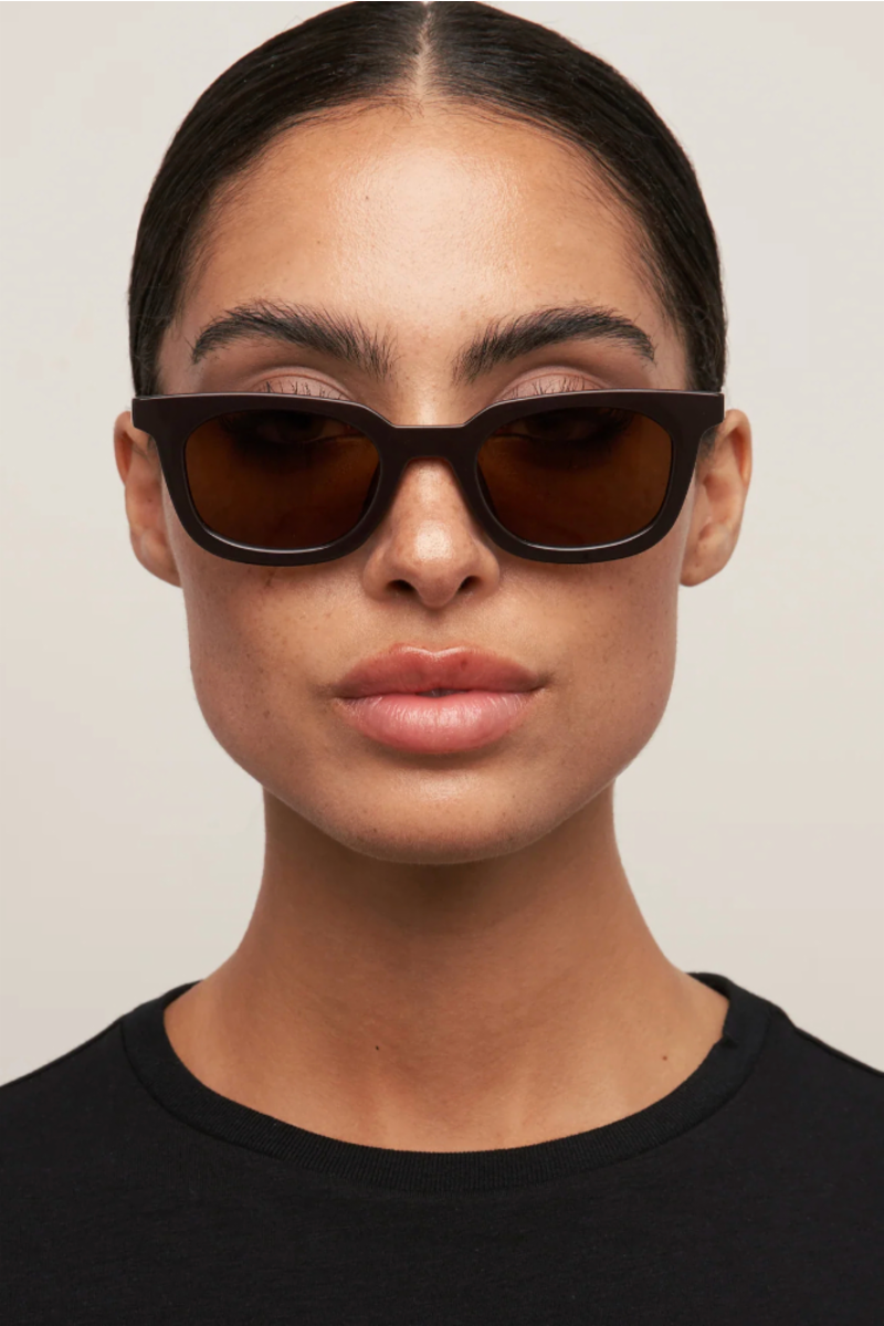 The luxe brown-tinted lenses offer full UV protection while adding a soft vintage tone, creating the perfect balance of fashion and function. Whether you’re heading to the beach, styling a city look, or elevating a casual outfit, the Nia's versatile wayfarer shape complements a variety of face shapes and personal styles.