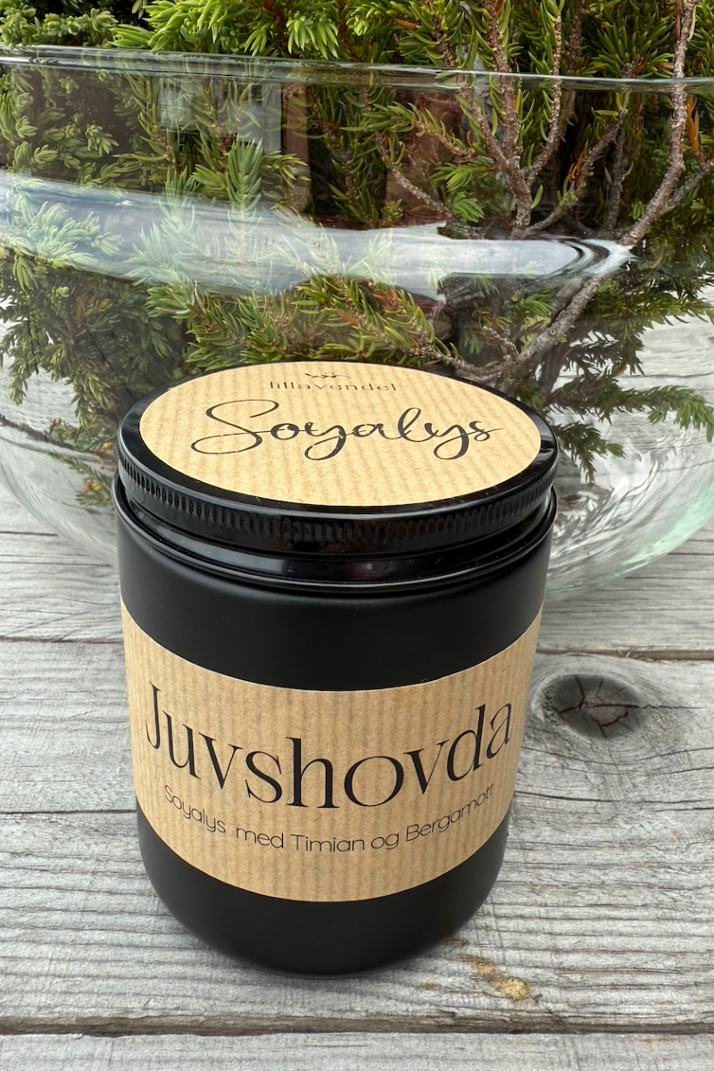 Våre soyalys dufter av nydelige lukter som vi har utviklet gjennom mange år med omhu. De brenner renere og produserer færre giftstoffer, noe som gir bedre innendørs luftkvalitet – ideelt for personer med følsomhet eller luftveisproblemer. I tillegg er soyavoks biologisk nedbrytbar og ikke-giftig, og lysene varer lenger og er enkle å rengjøre, da søl kan fjernes med såpe og vann. Velg soyavokslys for en bærekraftig, tryggere og lengre varende lysopplevelse med luksuriøse dufter. VASSTULAN 1100 sin signatur duft er en himmelsk blanding av timian og bergamott - bruk den gjerne sammen med samme serie i håndsåpe og romduft for å skape din egen hytte duft.