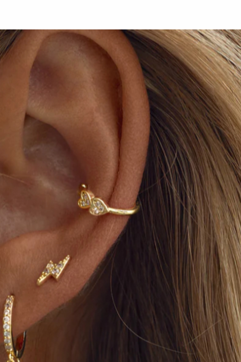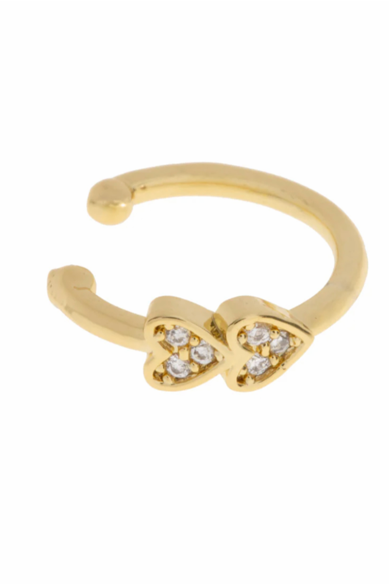 The Two Crystal Hearts Ear Cuff brings double the charm! Featuring two sparkling heart-shaped crystals, this cuff adds a romantic touch to any outfit—no piercing needed! Perfect for layering or wearing solo for an elegant sparkle.