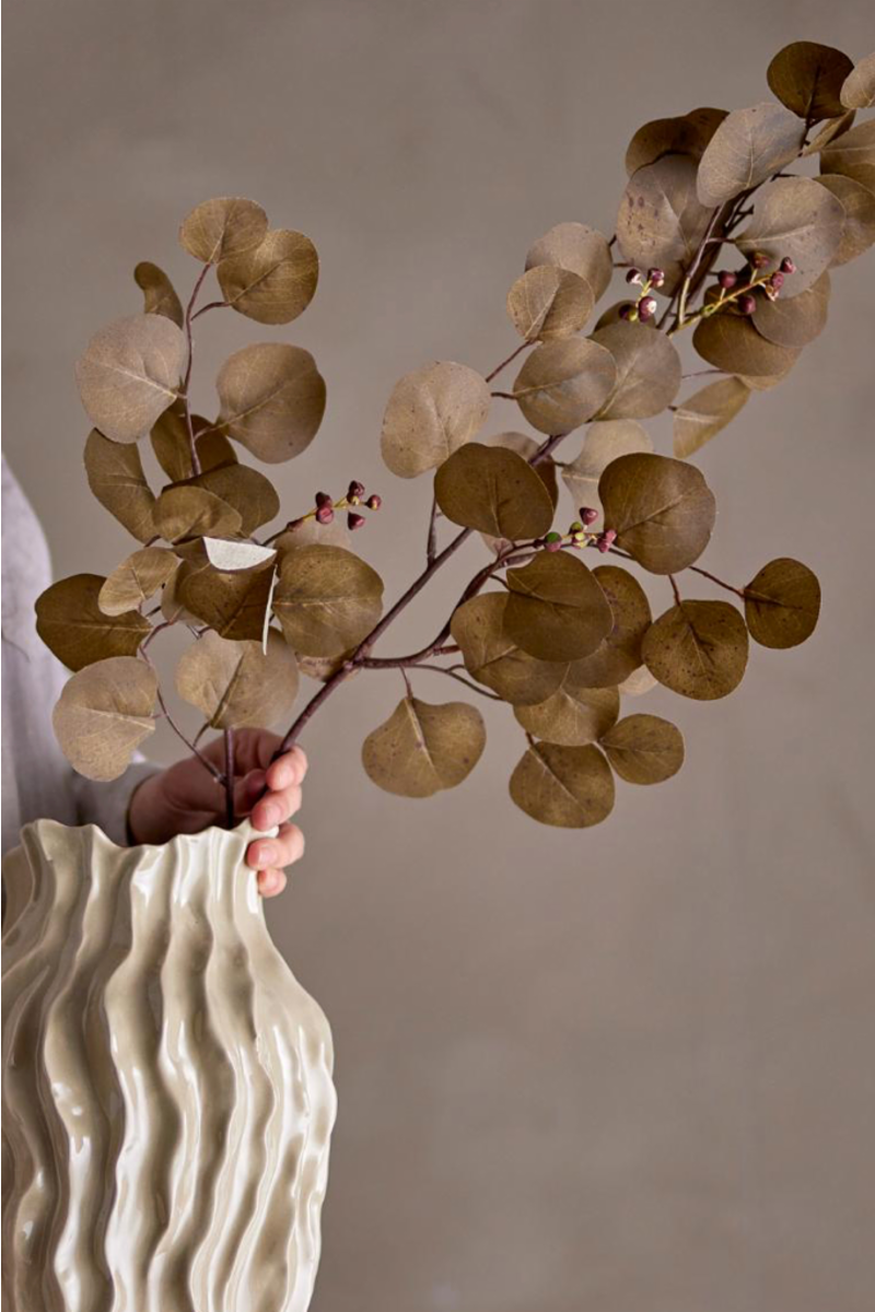 Eucalyptus Kunstig Stilk fra Bloomingville tilføjer et strejf af naturens ro og skønhed til ethvert rum. Denne naturtro, kunstige eukalyptusgren forbliver smuk år efter år uden behov for vedligeholdelse. Med dens alsidighed kan denne kunstige plante let integreres i forskellige buketter eller bare stå alene. Før brug kan du med fordel forme stilken, for at frembringe dens naturlige udseende og tilpasse den til din personlige indretning.