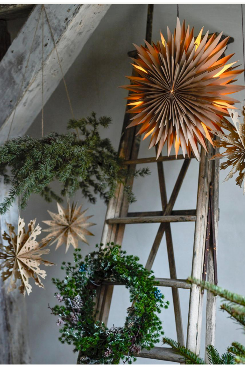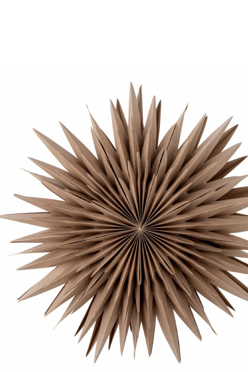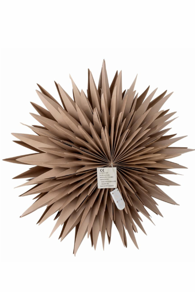 Elijas Stjernen m/Lys fra Bloomingville er en elegant dekoration med et indbygget LED-lys, der skaber en varm og hyggelig glød. Med sit enkle og stilfulde design tilføjer stjernen en festlig stemning til juleudsmykningen, men fungerer også som en stemningsfuld dekoration året rundt. Stjernen er fremstillet af brunt papir og kan nemt foldes sammen, når den ikke er i brug, hvilket gør den praktisk at opbevare.