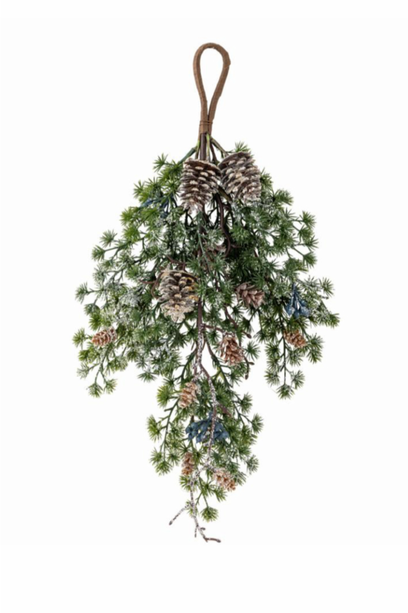 Cedar Deko fra Bloomingville er en smuk og stemningsfuld dørdekoration, der kombinerer grangrene, kogler og et strejf af sølvglimmer. Denne elegante dekoration bringer naturens skønhed ind i hjemmet og er ideel til at hænge på døren eller bruge som en del af din juleudsmykning. Med sit klassiske design tilfører den et tidløst og festligt udtryk til enhver indretning.