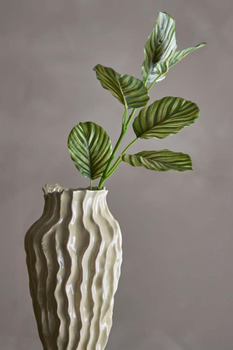 Zebra Kunstig Stilk fra Bloomingville er med sine karakteristiske stribede blade, en dristig og stilfuld tilføjelse til hjemmet. Dens iøjnefaldende mønster giver dybde og en moderne flair til enhver vase og fungerer godt i en buket med andre stilke. Før brug kan du med fordel forme stilken, for at frembringe dens naturlige udseende og tilpasse den til din personlige indretning.