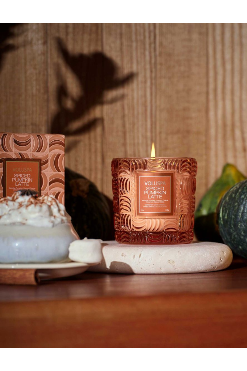 Voluspa's unique coconut wax blend is housed in a 12 oz. embossed ribbed pumpkin pattern glass jar with decorative gift box. The single wick allows you to enjoy fragrance throw for 60 hours. Our candles are handcrafted in the United States and feature our proprietary, clean-burning coconut wax blend and natural wicks. Our products are free of phthalates, parabens and sulfates and are never tested on animals. Up-cycle this best seller into a keepsake after the last burn.