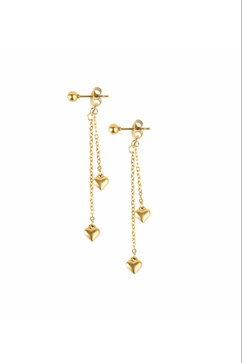Søt og romantisk med dette hjertekjede-øredesign. Disse sjarmerende ørestikkene i rustfritt stål har delikate hjerte-detaljer på en kjede, er vannavstøtende og misfargingsfrie for en kjærlig touch. Tilgjengelig i sølv & gull for å passe din stil og dine behov.