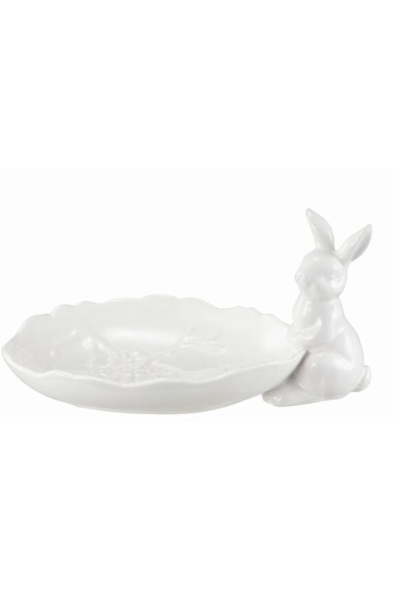 Molli er et søtt og dekorativt fat med en sjarmerende kaninfigur som kikker over kanten. Perfekt for servering av småting eller som et dekorativt element på bordet.