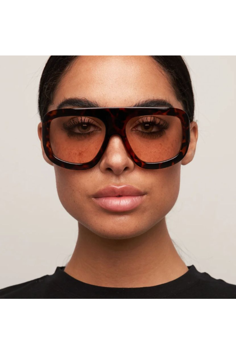 Vail fra Otra Eyewear er et par statement-solbriller som kombinerer et skarpt design med en moderne og selvsikker stil! Solbrillene har en oversized passform med en markant, kantet silhuett som gir en spennende vri på den klassiske aviator-looken. Enten du velger den brunmønstrete rammen sammen med myke, rosa glass eller den sorte rammen med myk sorte brilleeglass så skaper en fin kontrast og et sofistikert uttrykk.