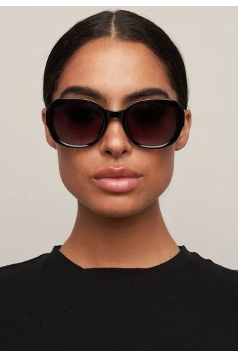 Otra Eyewear Darcy Black & Smoke Fade er solbriller med en oversized rund og oval silhuett og et moderne uttrykk. Innfatningen har en sort farge som gir solbrillene et tidløst og markert preg. Glassene har Smoke Fade-farge i linsekategori 2, og solbrillene har 100 % UV-beskyttelse. Den lette og komfortable konstruksjonen gjør dem behagelige å bruke, og modellen leveres med en vegansk solbrillebeskytter.
