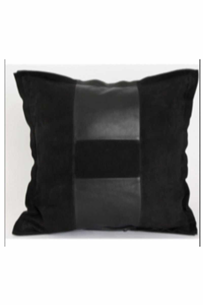 Putetrekk i sort semsket skinn med innslag av glatt skinn som danner en diskrét H-logo. Bakside av sort bomullsfløyel.